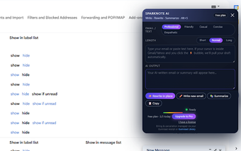 이 도구는 Gmail 및 Yahoo와 같은 인기 있는 이메일 플랫폼과 원활하게 통합되어 사용자가 탭을 전환하지 않고도 기능에 접근할 수 있도록 합니다. 선택적 업그레이드인 SparkPro를 통해 사용자는 무제한 작업 및 추가 도구를 잠금 해제할 수 있습니다. 사용자 프라이버시를 최우선으로 고려하여 SparkNote AI는 어떤 콘텐츠도 저장하지 않으며, 생성된 모든 텍스트가 기밀로 유지됩니다.